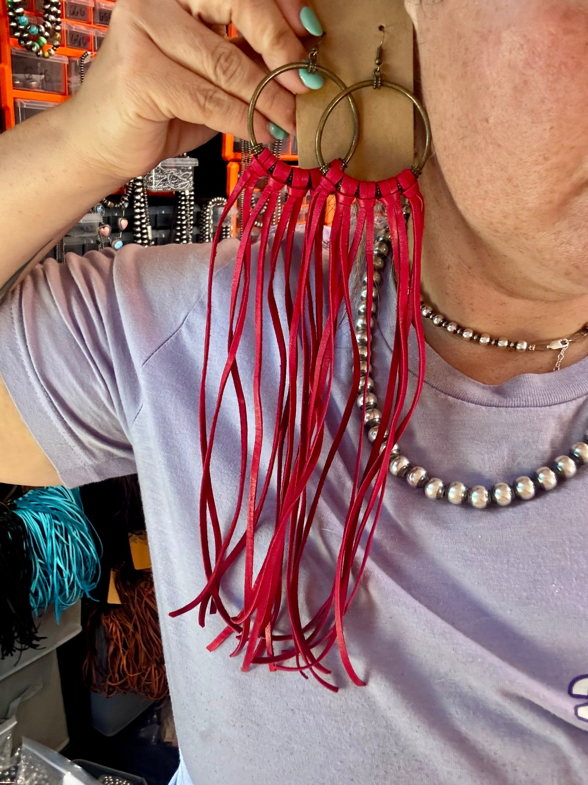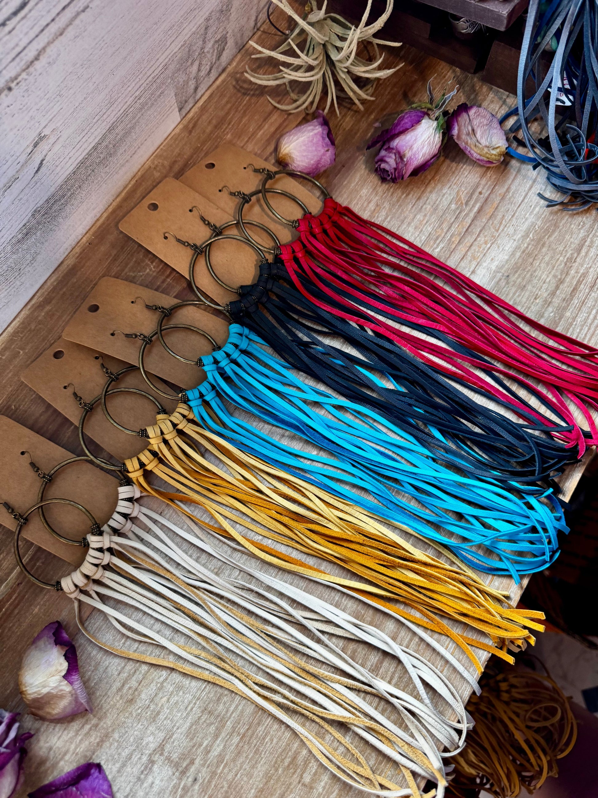 11" long leather hoop earrings
