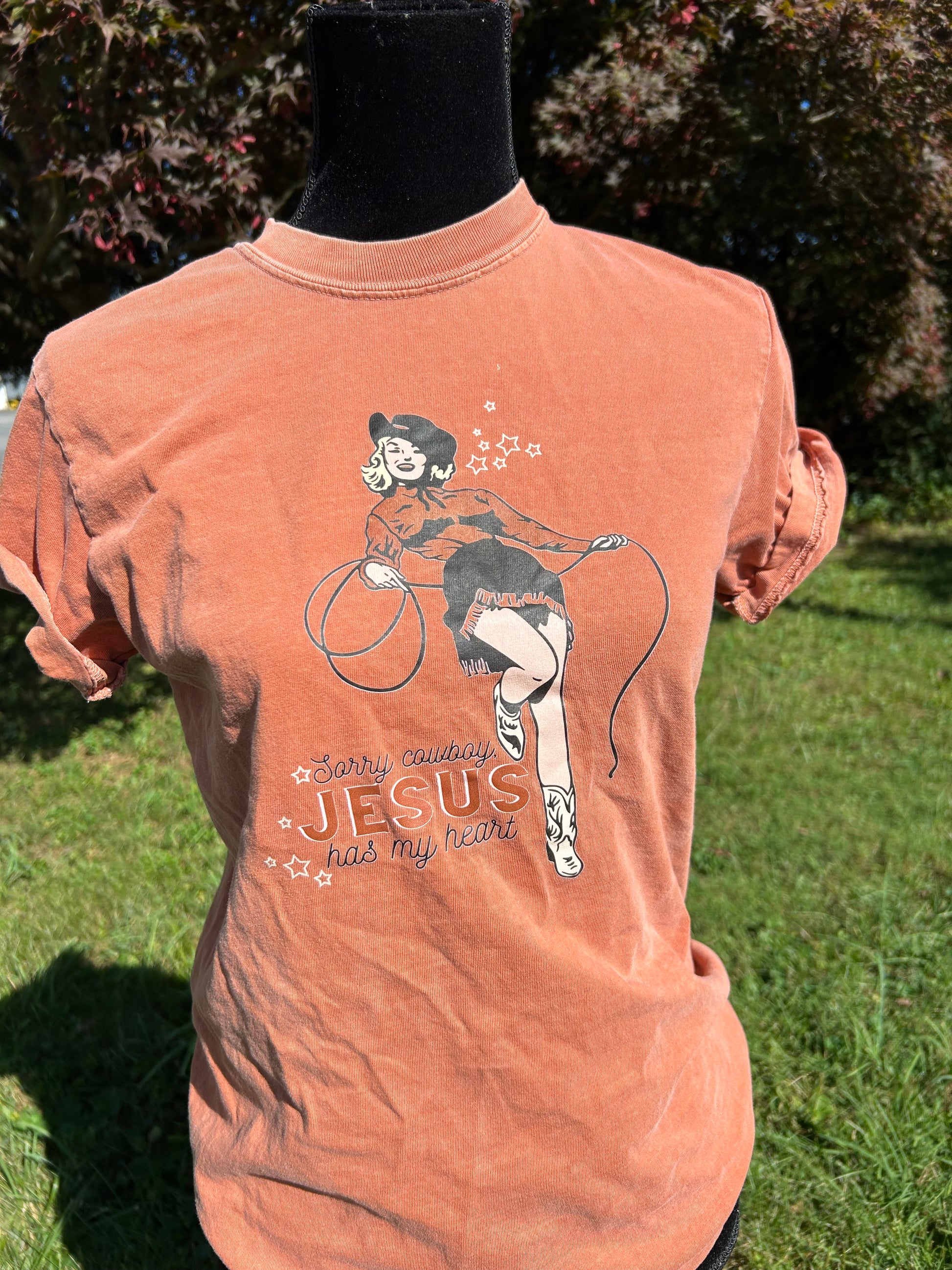 Printed on a 100% cotton tee in the color yam by comfort colors.
